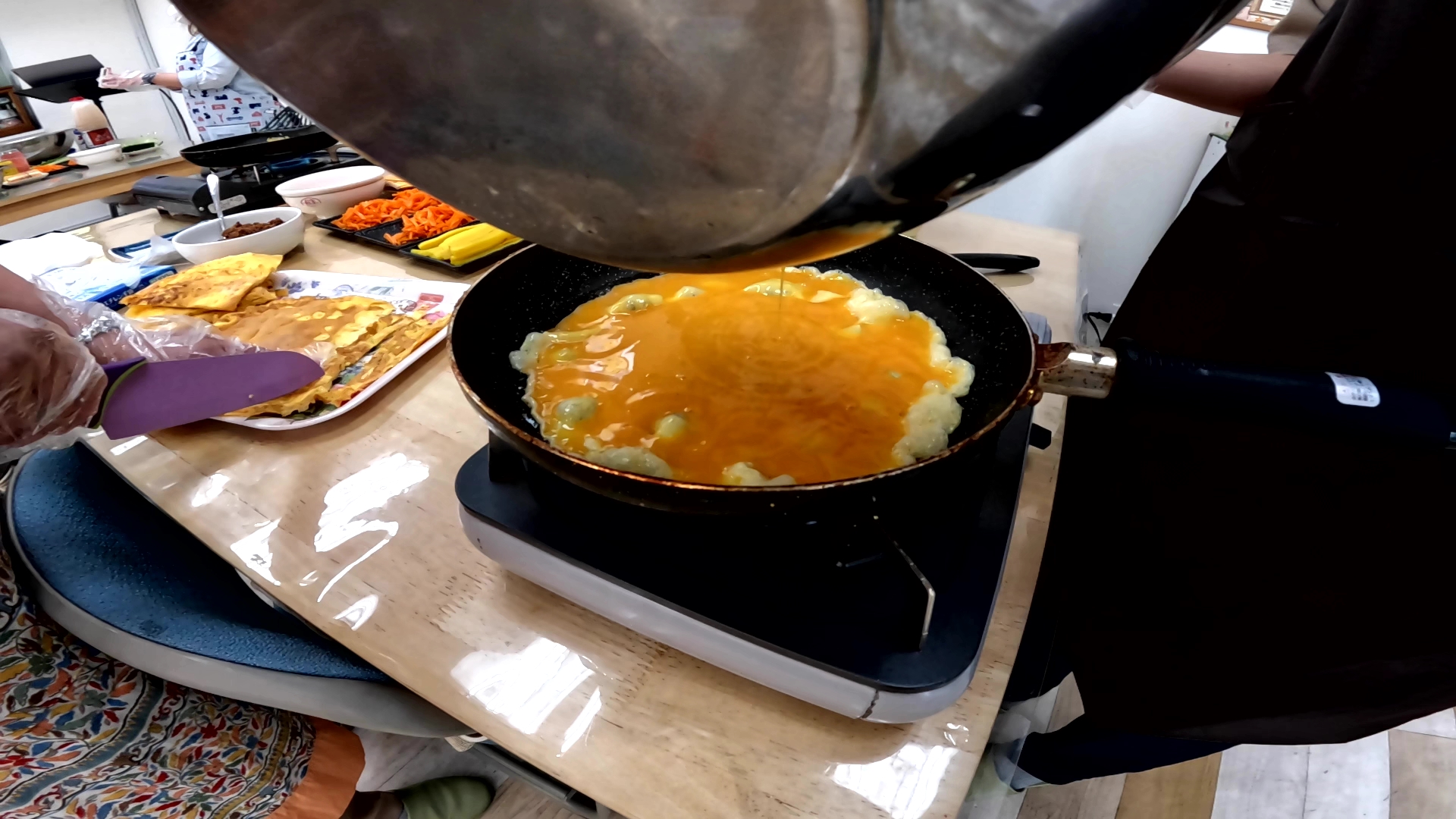 각 테이블에는 이렇게 밑재료가 준비 되어있어서 행사 참가자들이 기름에 굽고 지지고 볶고 할 수 있도록 참여를 유도했다.