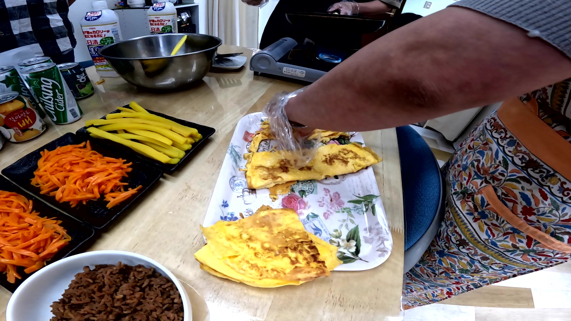 흔한 동그랗고 긴 김밥, 그리고 샌드위치 같은 김밥 만들기가 이날의 목적이었다.