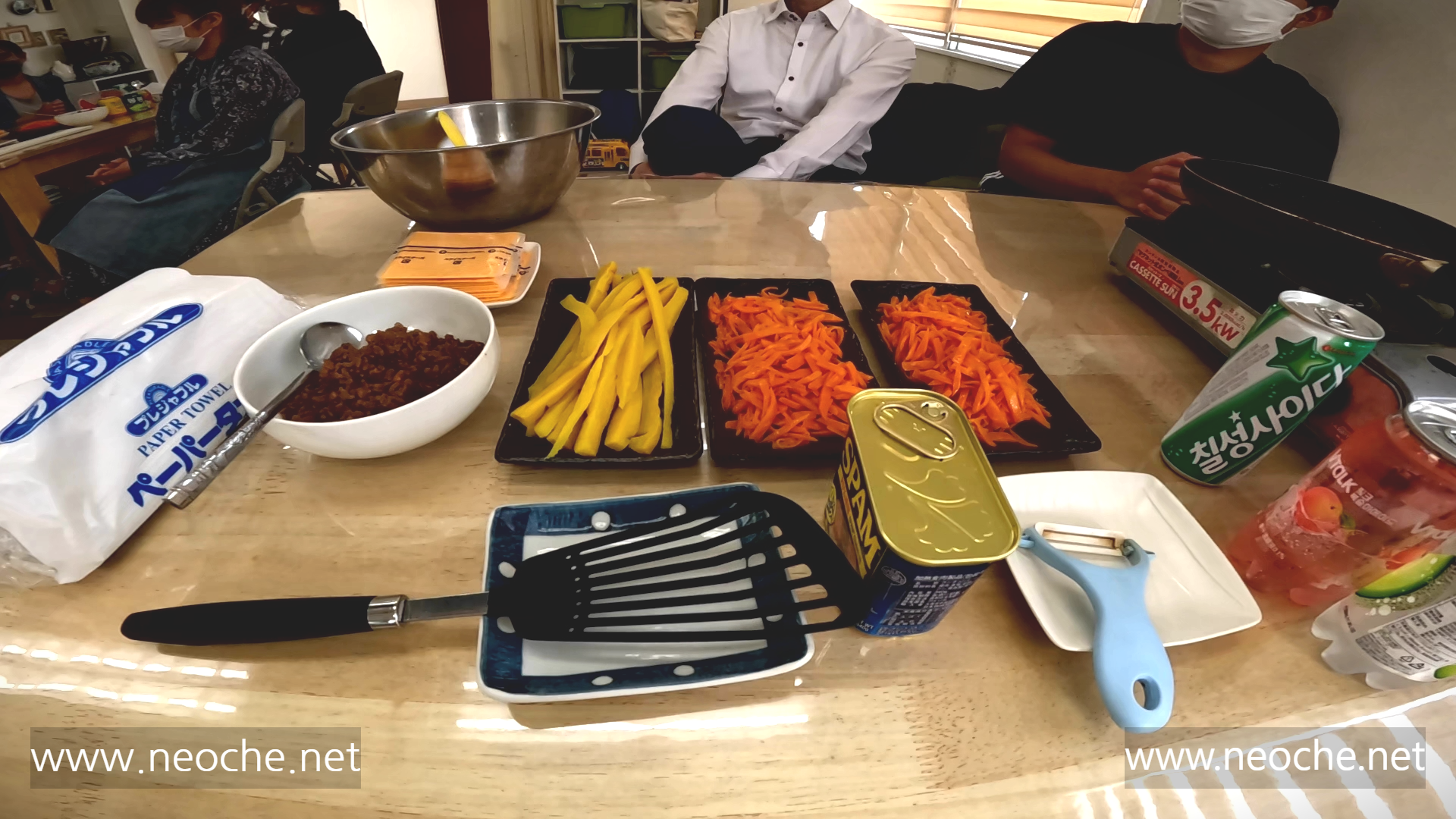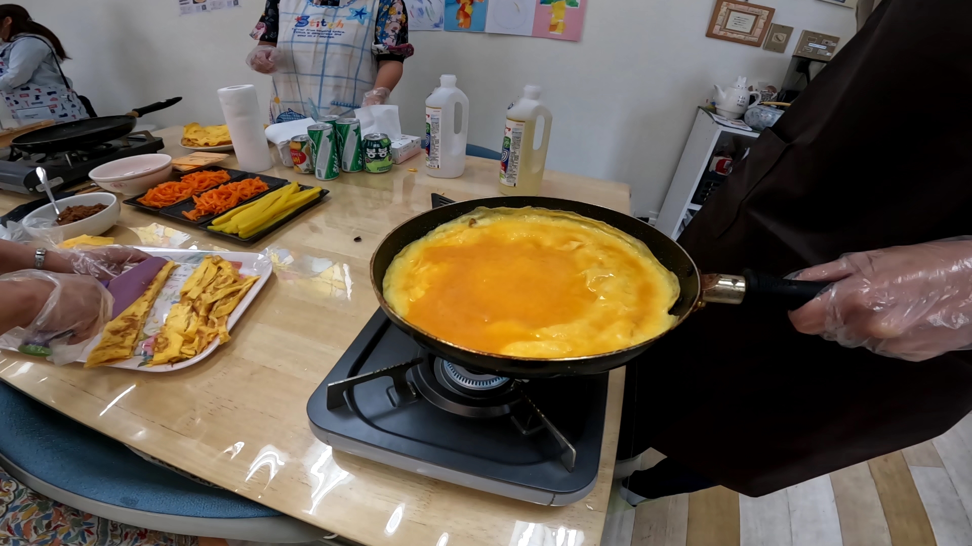 각 테이블에는 이렇게 밑재료가 준비 되어있어서 행사 참가자들이 기름에 굽고 지지고 볶고 할 수 있도록 참여를 유도했다.