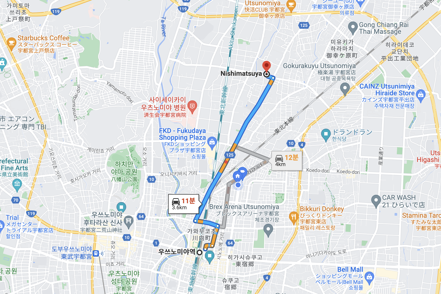 저희가 다녀 온 곳은 우츠노미야 역에서 차로 약 15분 정도 가야 되는 곳이었습니다.