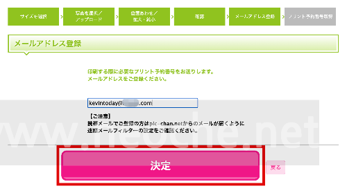 메일 주소를 입력하고 화면 아래의 [決定] 버튼을 클릭해서 결정한다.